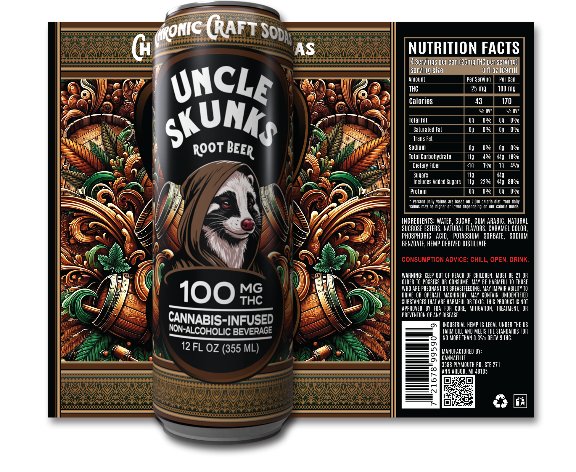 100 Mg D9 | Root Beer | Uncle Skunks | 12oz | Chronic Craft Soda